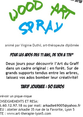 10h à 12h : Rendez-vous en tenue adaptée (vêtements ne craignant ni la nature ni la peinture) à l'atelier Arkadie pour la découverte et l'élaboration des techniques du Graff.